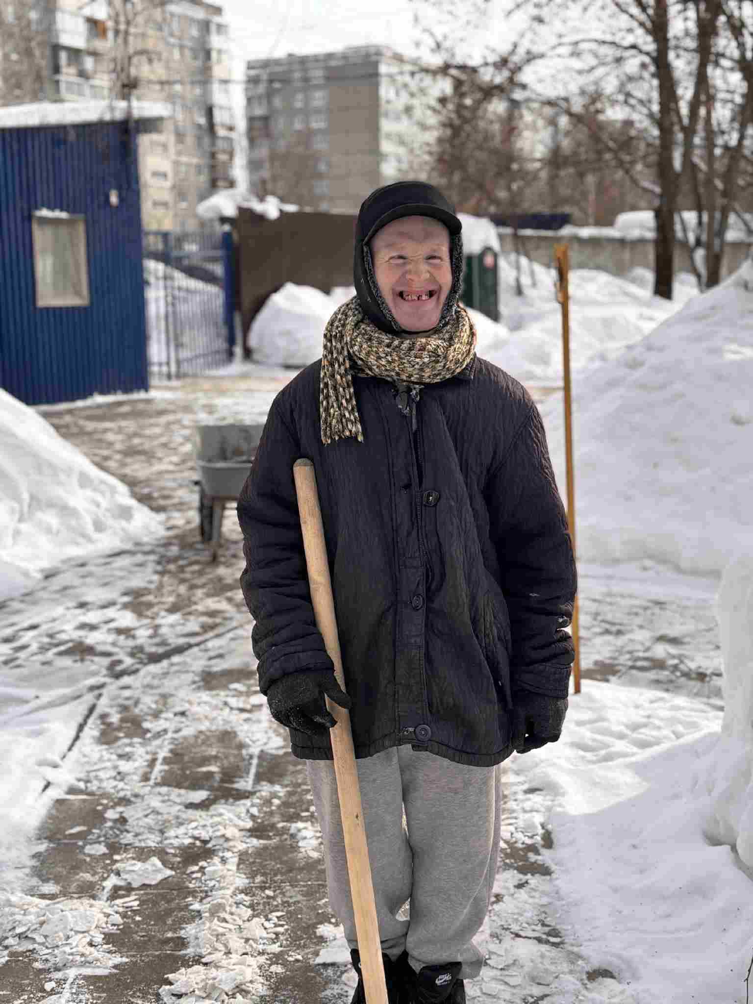 Когда к нам приходят гости, то часто видят Диму на улице — он помогает наводить на территории интерната чистоту. Парень всю жизнь провел в интернатах: сначала был детский дом, а после взрослый, психоневрологический. Родных у него нет, в гости к Диме приходят только волонтеры.