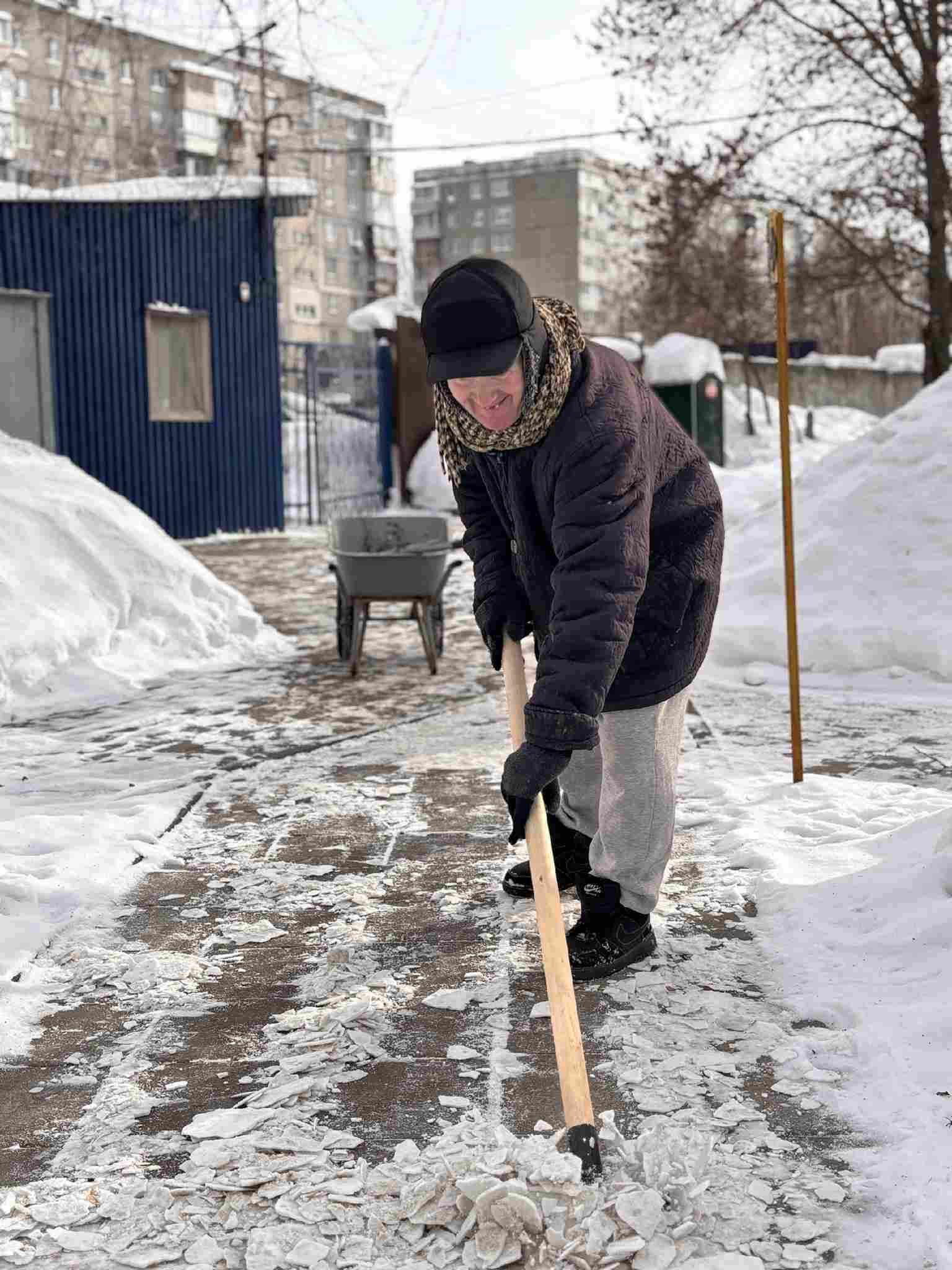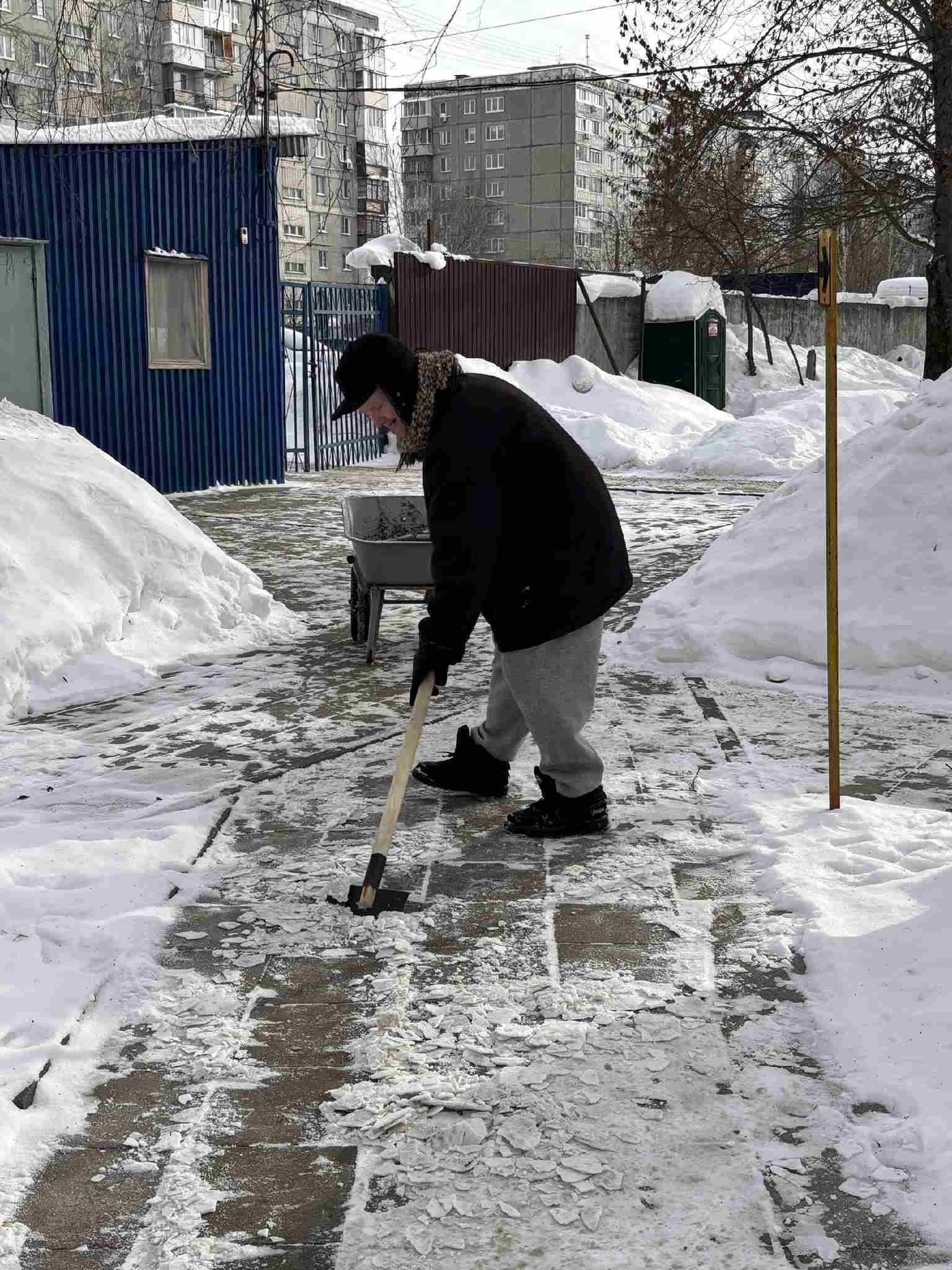 Димка окидывает взглядом территорию улицы и довольно улыбается: на дорожках больше никакого льда и снега, вот теперь всем будет удобно! :)